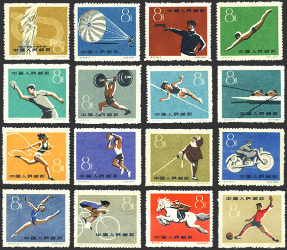全运会已走到第十五届,与之相关的邮票也发行了十五套。从1959年至今,横跨六十余载时光,每一套邮票都带着鲜明的时代印记。